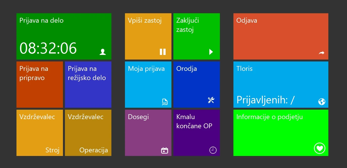 Na terminalu so prikazani podatki o delovnem nalogu in število kosov, ki jih je še potrebno še narediti. Ob začetku dela se delavec s pomočjo osebne identifikacijske kartice s črtno kodo prijavi na stroj in prične z delom. KINER avtomatsko zaznava delovanje stroja in beleži izdelane kose. Če med delom pride do zastoja, program zabeleži njegov začetek in zaključek. Ob koncu izmene delavec vpiše morebiten izmet in se odjavi. Podatki o realizaciji delavca se prenašajo v bazo podatkov, s tem pa ima izmenovodja v vsakem trenutku možnost pregleda realizacije nalogov.